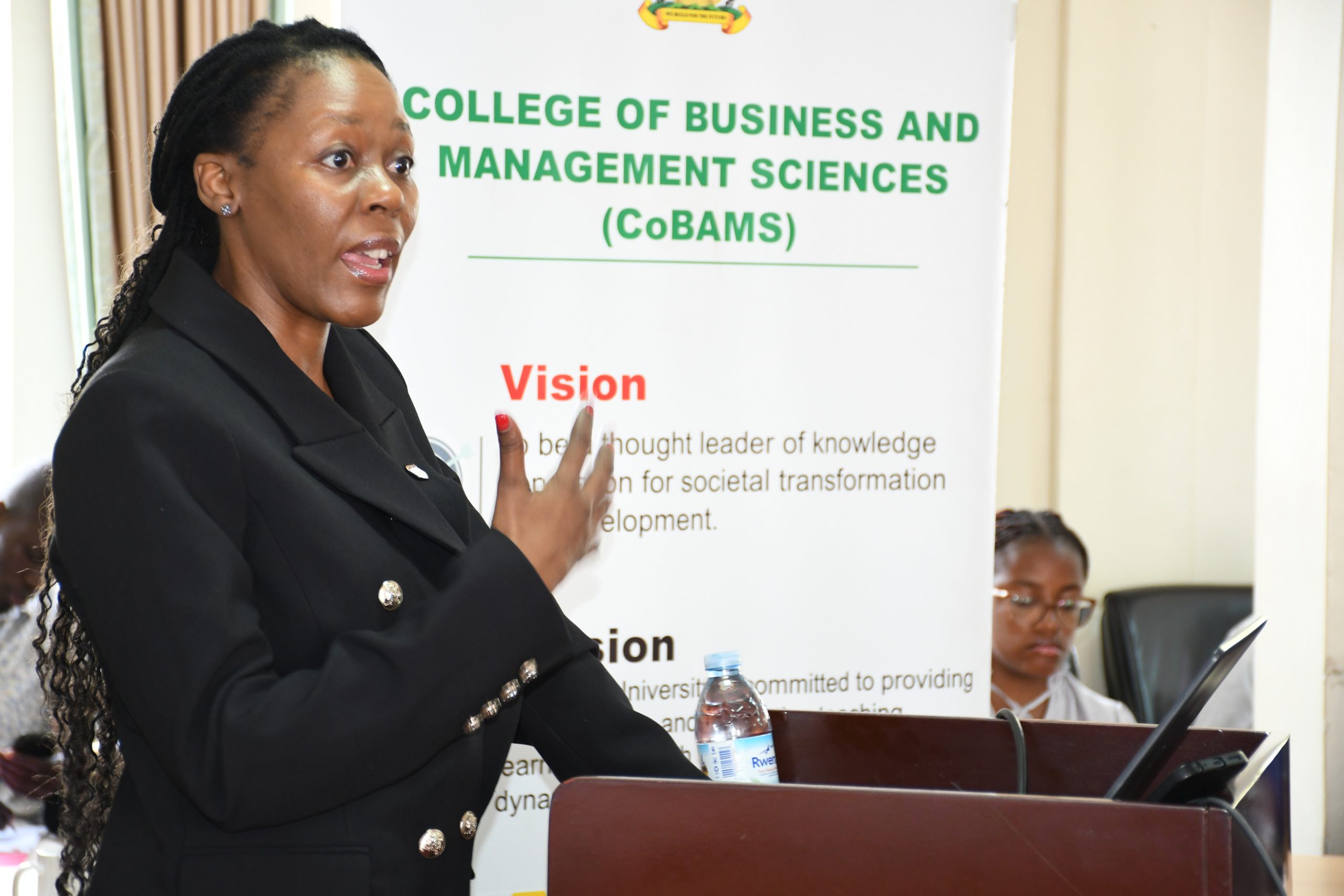 Delivering the lecture to undergraduate and graduate students pursuing human resource management courses at Makerere University, Dr. Sizile Makola, a researcher and Senior Lecturer in Business Management at the University of South Africa, focused on integrating indigenous knowledge and organizational practice.