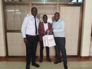 L-R: Mr.Chemutai Jabeth Jamil and Mr. Businge Rogers- Database Administrators at URA , Mr.Calvin Jodisi- President of Asenti Africa