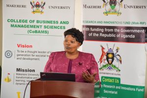 Dr. Tibaingana acknowledged the government of Uganda through the Makerere University Research and Innovation Fund (MakRIF) for funding the research project titled, Promoting Eco-Efficiency (EE) and Cleaner Production (CP) for sustainable development of Micro, Small and Medium Enterprises (MSMEs) in Uganda. He recognized Professor Fred Masagazi Masaazi, Chairperson of the Mak RIF Grants Management Committee (GMC) and thanked him, for gracing the dissemination workshop with his personal presence.