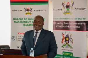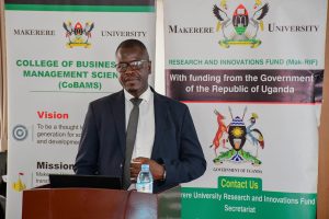 The Dean, School of Business, Associate Professor Godfrey Akileng urged researchers, faculty and participants at the dissemination workshop to rethink how research translates into real economic value, emphasizing stronger research to industry pathways at Makerere University and beyond.