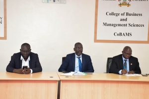 L-R: Assoc. Prof. Godfrey Akileng-Dean-School of Business,Assoc. Prof. Julius Kikooma-Director of Graduate Training,Assoc. Prof. James Wokadala-Deputy Principal of CoBAMS