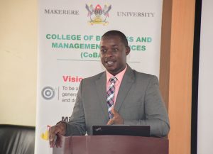 Dr. Kasimu Sendawula, the CoBAMS Graduate Students Coordinator, noted that the Doctoral Colloquium provided a platform to interact and learn from experienced researchers at Makerere University in the fields of business, economics, statistics and planning. Dr. Sendawula was optimistic that the knowledge sharing would enrich the work of the PhD scholars. In addition, the networks built would inspire PhD scholars to work together during their academic and research journey.