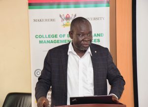 Highlighting that the College was intentional on graduate training and research, he pointed out some of the strategic approaches being undertaken to align the College activities to the research-led agenda of Makerere University. These include:  Working closely with the Directorate of Graduate Training in the execution of its mandate, constitution of the CoBAMS PhD Forum, hosting of the Annual CoBAMS Doctoral Colloquium, production of CoBAMS research paper working series, nomination of Dr. Kassimu Sendawula as the Graduate Coordinator, and ongoing efforts to encourage joint publications among faculty and graduate students.